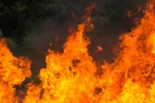 Из-за огня покинуть дом через дверь она не могла, и мужчины помогли ей выбраться через окно.