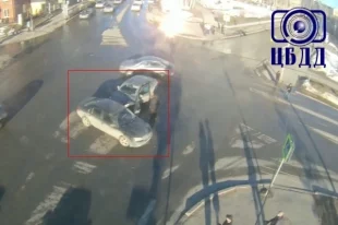 Автомобили столкнулись прямо посреди перекрёстка.