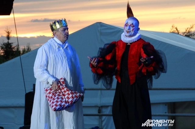 В этом году организаторы попали со спектаклем-открытием в самую точку. Главные герои, бродячие артисты, которые привыкли жить и выступать под голубым небом среди сосен-великанов, будто бы попали как раз на ту сцену, которая им привычна и близка.