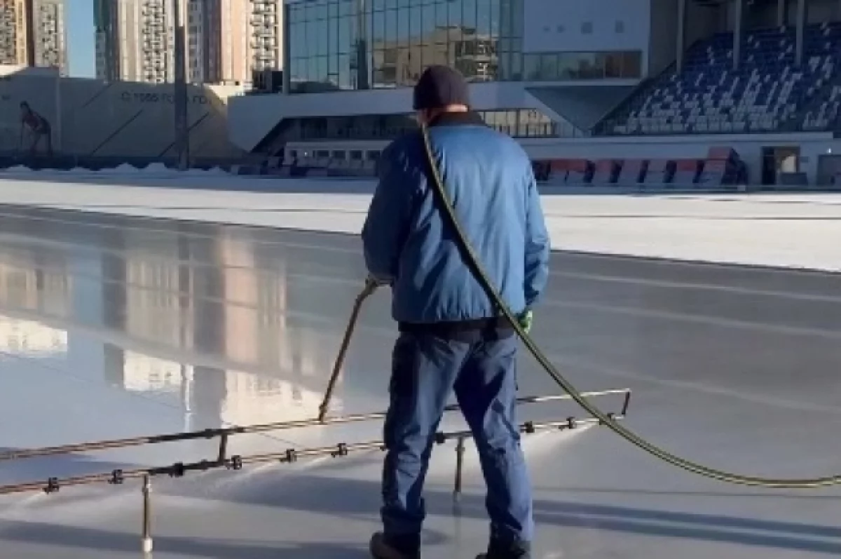 Он уточнил, что на объекте установили системы, которые позволяют заливать лёд даже если на улице сохраняется плюсовая температура.