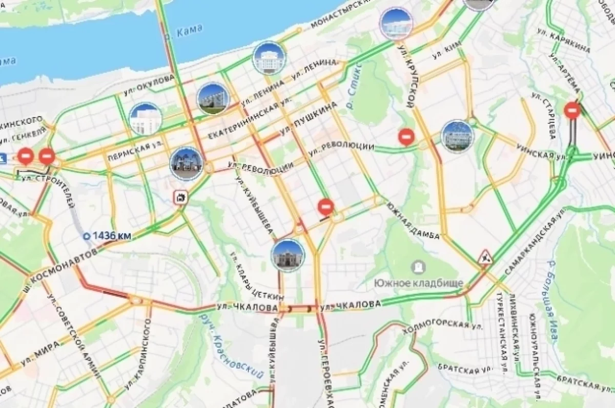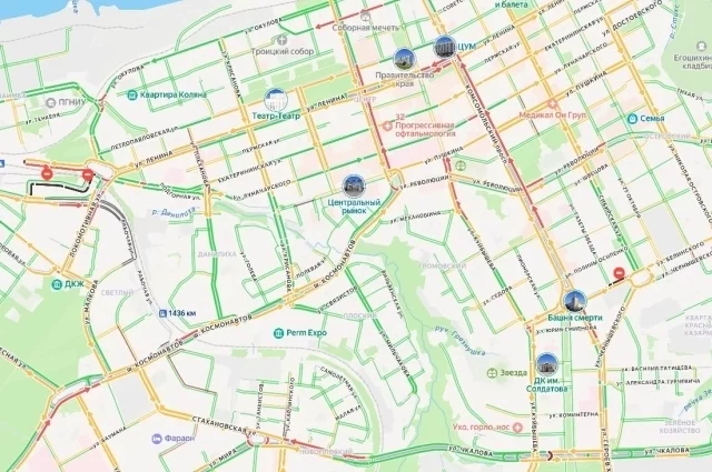 По данным сервиса Яндекс.Карты, движение оказалось затруднено на разных концах города. В частности, проблемы с пробками заметили на улице Чкалова – от Героев Хасана до Стахановского кольца, а также на улице Попова и Комсомольском проспекте. Проблемы с проездом также заметны на улице Соликамской, где утром 10 ноября длина затора превысила 4 километра.