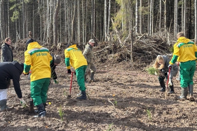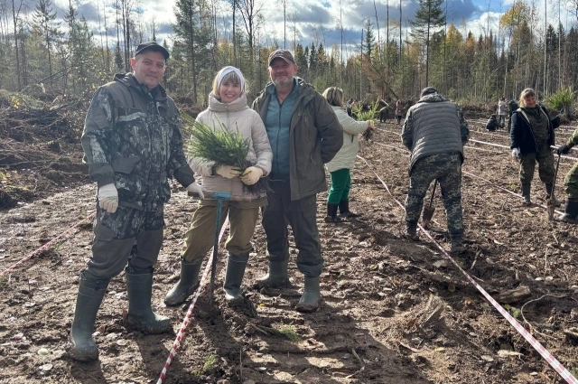 В высадке елей, формирующих надпись, видимую с высоты, приняли участие представители краевой и муниципальной власти, сотрудники Рослесинфорга, Добрянского лесничества, ООО «Уралбумага» – всего более 100 человек.