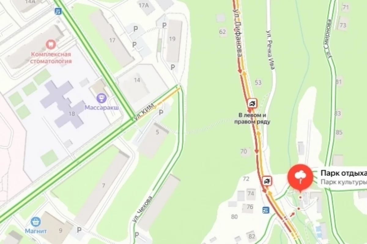 Судя по сервису «Яндекс.Пробки», на улице Лифанова произошло сразу два ДТП, из-за чего движение для транспорта сильно ограничено, копится пробка.