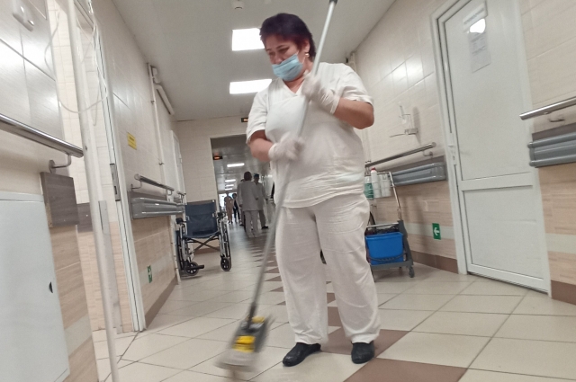 Рабочая нагрузка распределена между всеми пациентами всего отделения. Санитарки также занимаются влажной и генеральной уборкой помещений, обеззараживанием воздуха. Кроме того, за ними закреплена очистка медизделий, соблюдение порядка в холодильниках отделений.