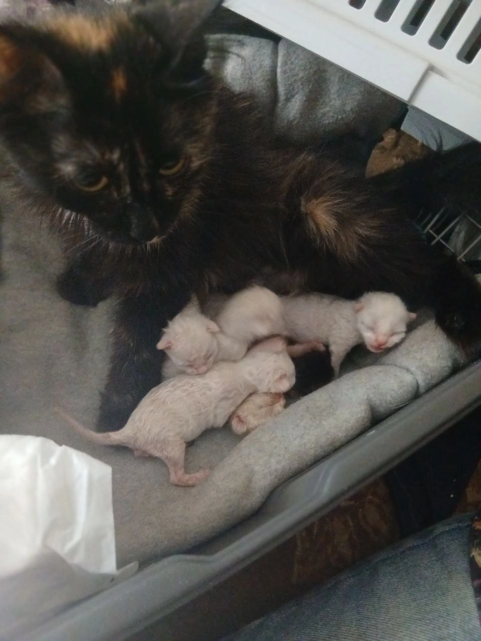 У Натальи живёт кошка Смола, которая совсем недавно должна была стать мамой. Но у питомца случился заворот матки, поэтому котят спасти не удалось. Смола только приходила в себя — и тут увидела малышей.
