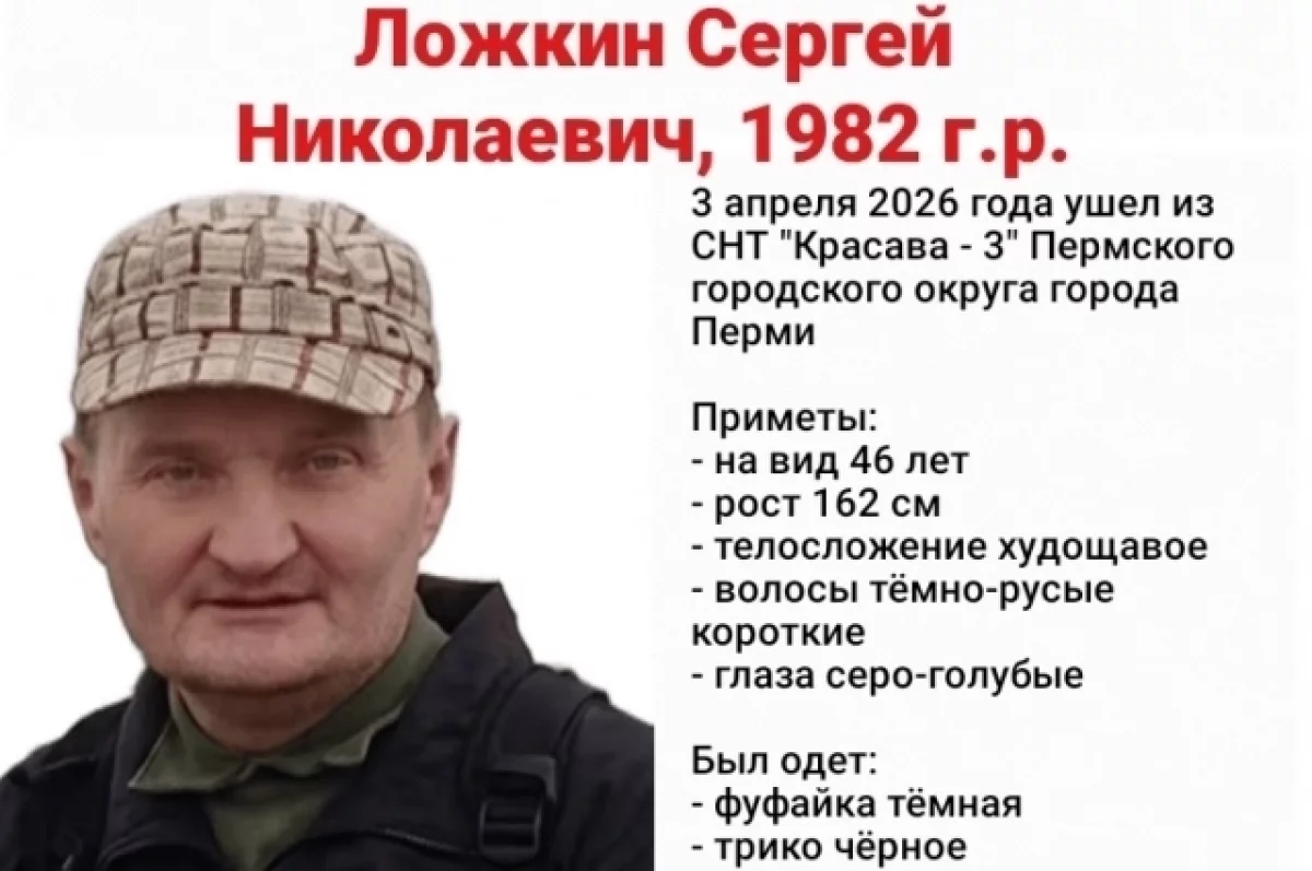 В Пермском городском округе ищут 43-летнего Сергея Ложкина. Волонтёры собираются 4 апреля в 13:00 в деревне Кондратово, в СНТ «Красава — 3». Мужчине требуется медицинская помощь.