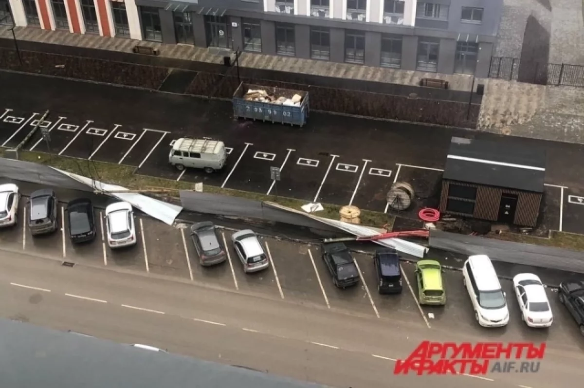 Под весом столбов листы металлопрофиля рухнули на землю рядом с припаркованными автомобилями. О том, пострадал ли стоящий транспорт, очевидцы не уточнили. По словам местных жителей, причиной инцидента стал сильный ветер, который поднялся в районе ЖК.