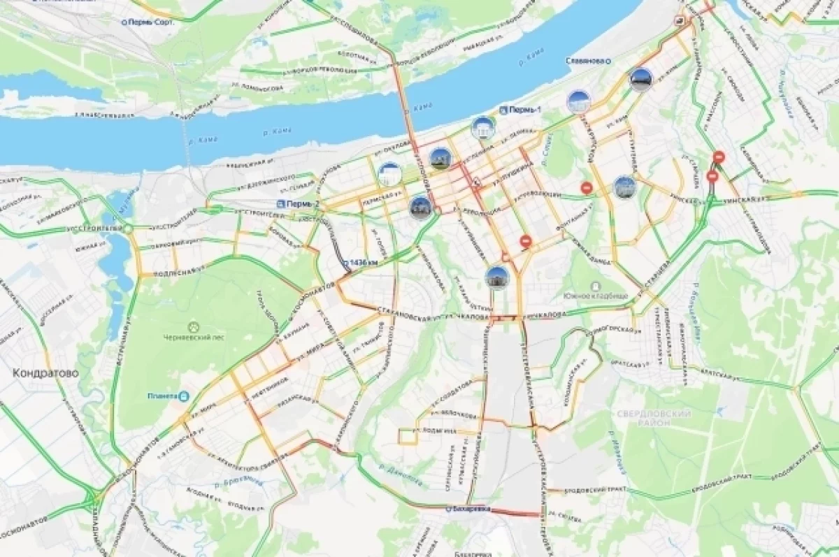 Пробки оценкой 9 баллов скопились в Перми вечером 22 декабря, сообщают Яндекс.Карты.