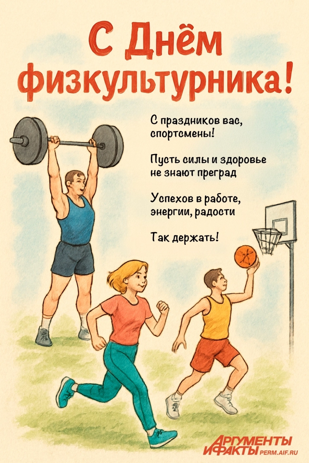 9 августа в России отмечается День физкультурника. Праздник закрепили постановлением правительства как день пропаганды спорта и здорового образа жизни. Сайт perm.aif.ru публикует открытки-поздравления с Днём физкультурника (открытки разворачиваются при клике на них для удобного скачивания).