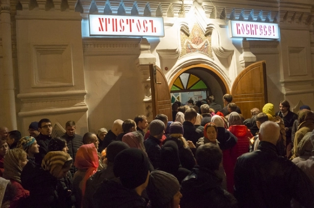 — Прийти на ночную службу и крестный ход. Богослужение начинается в субботу около 23:00. В полночь из храма выходит крестный ход — священники и прихожане обходят церковь со свечами. Затем звучит первое «Христос Воскресе!». Царские врата в иконостасе всю Светлую седмицу остаются открытыми — символ открытых врат Царствия Небесного. Если не получилось прийти — можно причаститься на любой литургии в течение всей Светлой седмицы;