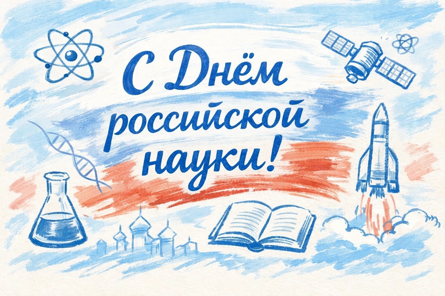 Сайт perm.aif.ru подготовил красивые картинки с Днём российской науки 2026. Их можно скачать совершенно бесплатно и отправить всем причастным. Для этого нужно выбрать понравившуюся открытку, нажать на красную кнопку под ней и сохранить на телефон или компьютер.