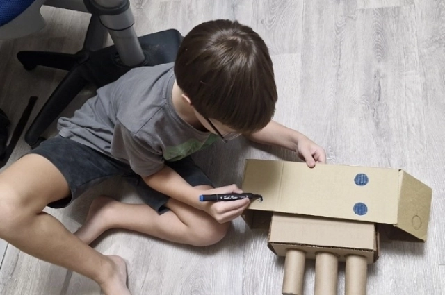 Первая часть фестиваля «Картон — не мусор» прошла в заочном формате. Она подразумевала участие всей семьи. Ребята помладше должны были придумать из картона настоящие костюмы, которые они потом продемонстрировали во время дефиле.