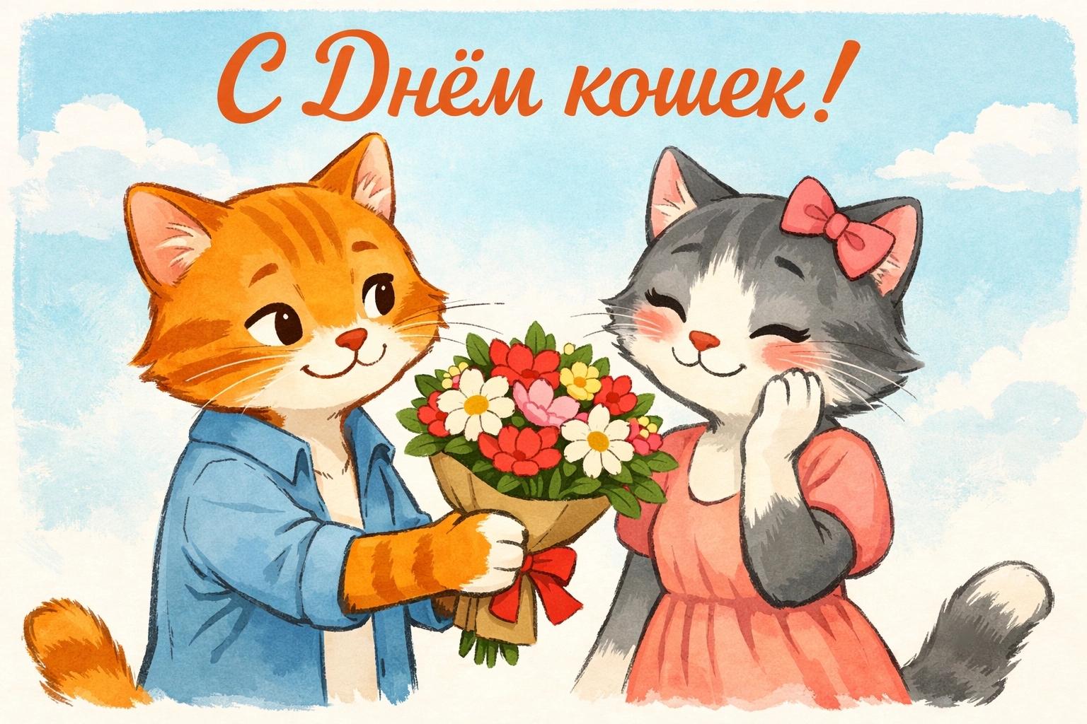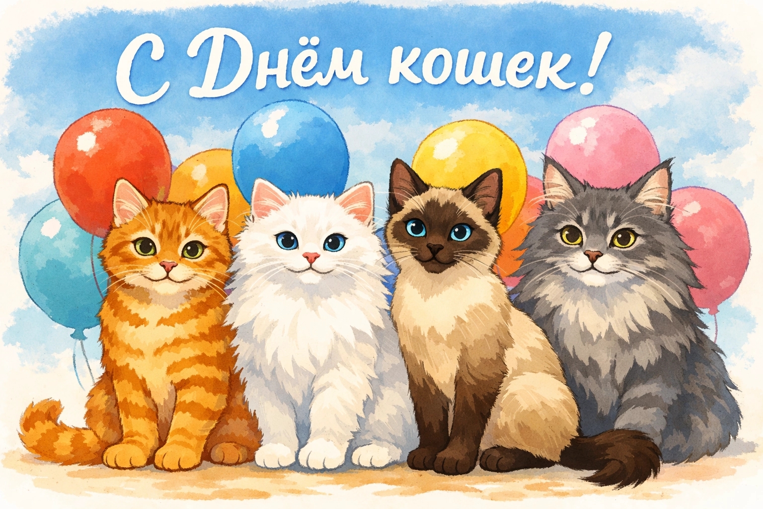 На сайте perm.aif.ru размещена подборка красивых открыток ко Дню кошек. Любую из них можно скачать бесплатно и отправить близким — родным, любимым, друзьям или коллегам, которые обожают пушистых питомцев. Чтобы скачать изображение, выберите понравившуюся картинку и нажмите красную кнопку «Скачать», расположенную под ней.