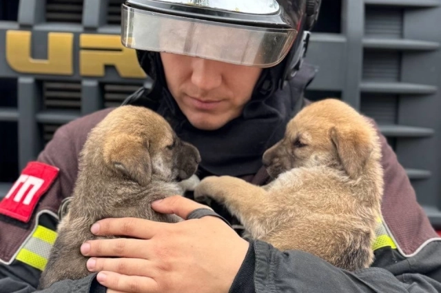 Услышав писк, мужчины пошли на звук и увидели несколько собак, которые были напуганы и жались друг к другу. По предположениям пожарных, щенят могла оставить их мама.