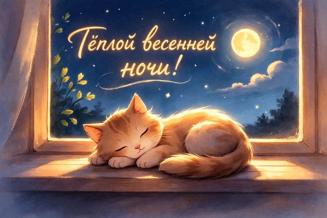 Именно поэтому приятно отправлять добрые пожелания на ночь — маленькие, но такие теплые знаки внимания, которые помогают снять напряжение, подарить улыбку и мягко проводить день к завершению. Сайт perm.aif.ru подготовил подборку красивых открыток «Спокойной весенней ночи» — с луной, звёздами, цветущими растениями, милыми кошками и тёплыми пожеланиями. Скачать любую из них очень просто: выберите понравившуюся картинку и нажмите кнопку «Скачать» под ней — она сразу сохранится на ваше устройство.