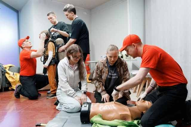 А 15-летний школьник Борис на площадке спасателей во второй раз учился оказывать первую реанимационную помощь. Впервые попробовал в лагере «Новое поколение».