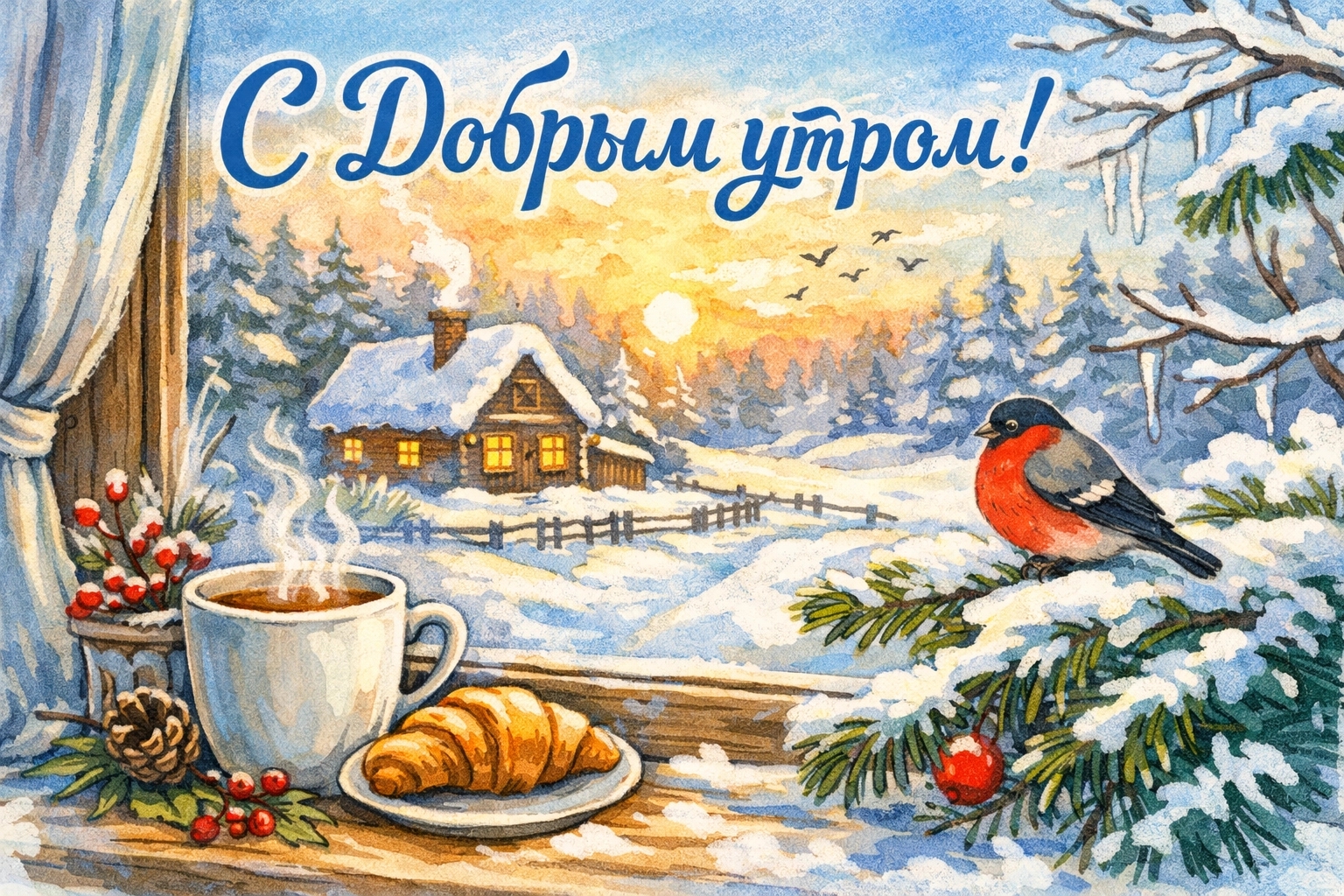 Поэтому сайт perm.aif.ru подготовил для читателей красивые зимние декабрьские открытки «С добрым утром!». Их можно скачать бесплатно и отправить самым родным и близким людям, родственникам и любимым, друзьям. Для этого нужно выбрать те картинки, которые больше всего вам понравятся, нажать на красную кнопку под открыткой и сохранить.