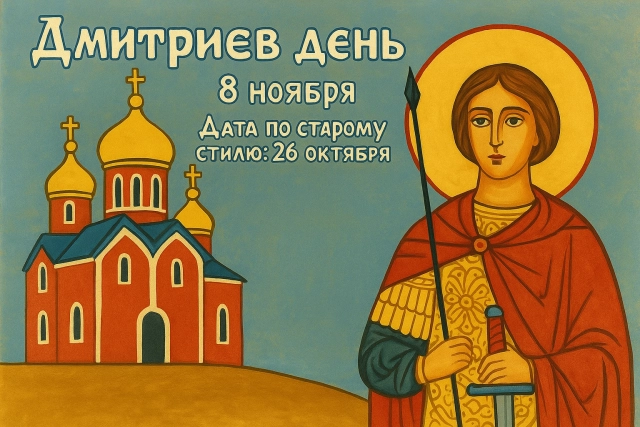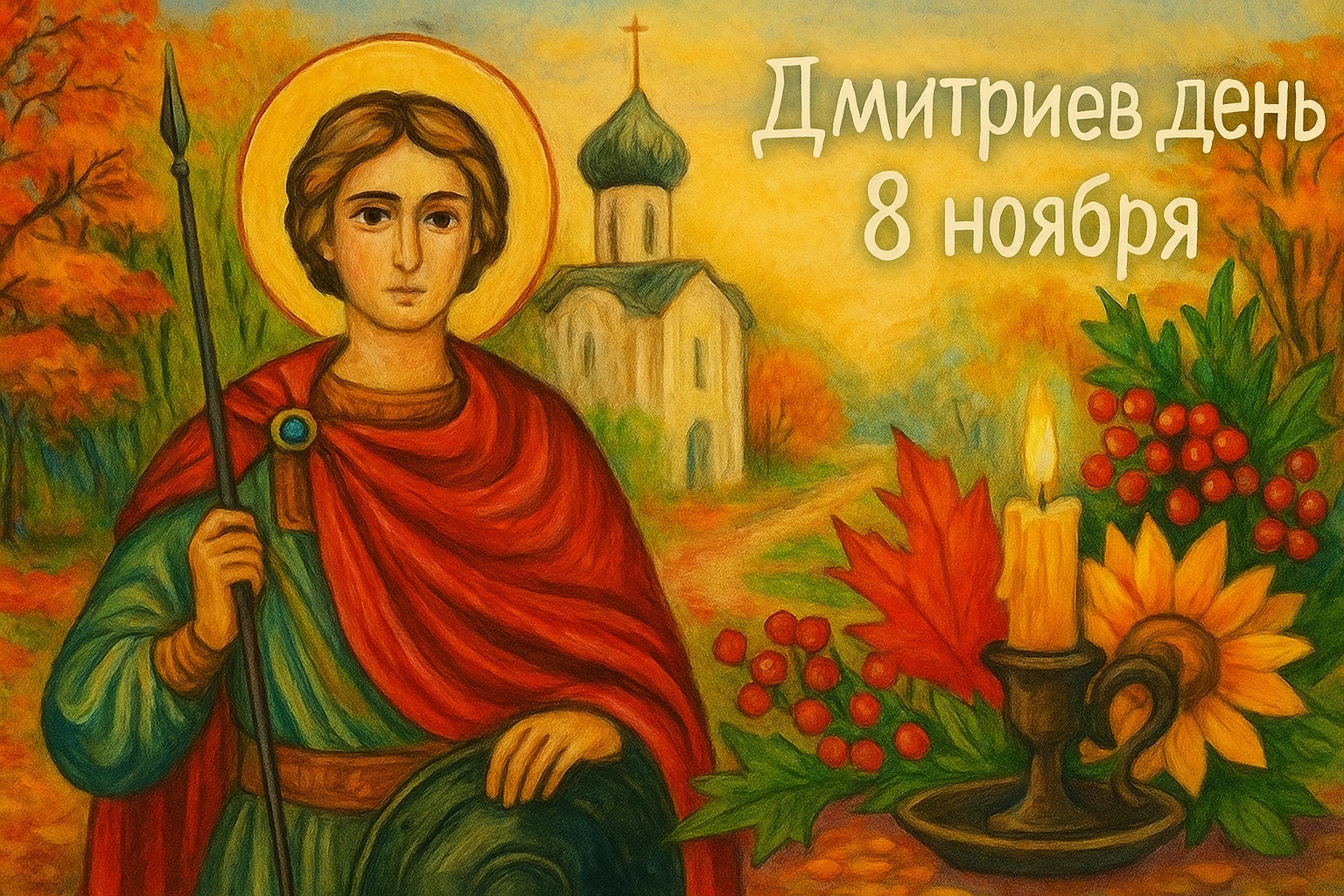 Дмитриев день отмечается 8 ноября (26 октября по старому стилю) в честь святого великомученика Дмитрия Солунского, одного из самых почитаемых православных святых. Дмитрий жил в III веке в городе Солуни (ныне Салоники), был воином и исповедовал христианскую веру. За свою веру он принял мученическую смерть и стал символом мужества, силы духа и защиты.