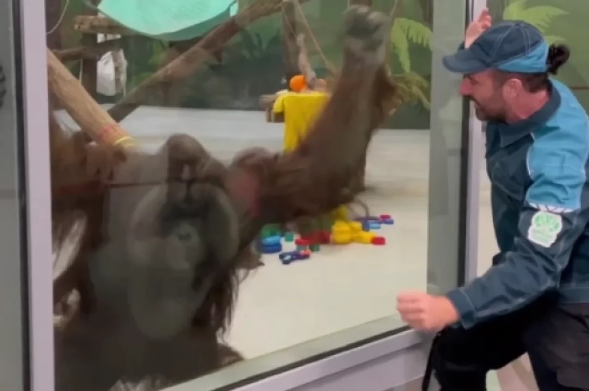 Ведущий программы «Поедем, поедим!» на НТВ во время съёмок в Перми приготовил праздничное блюдо для орангутана Билла из Пермского зоопарка.