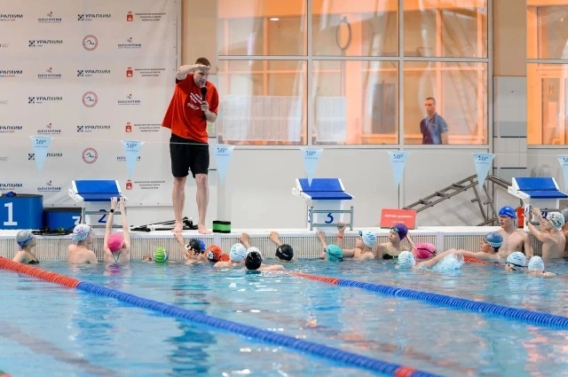Во второй день визита именитый пловец стал почётным гостем Первенства Пермского края по плаванию «Веселый дельфин».