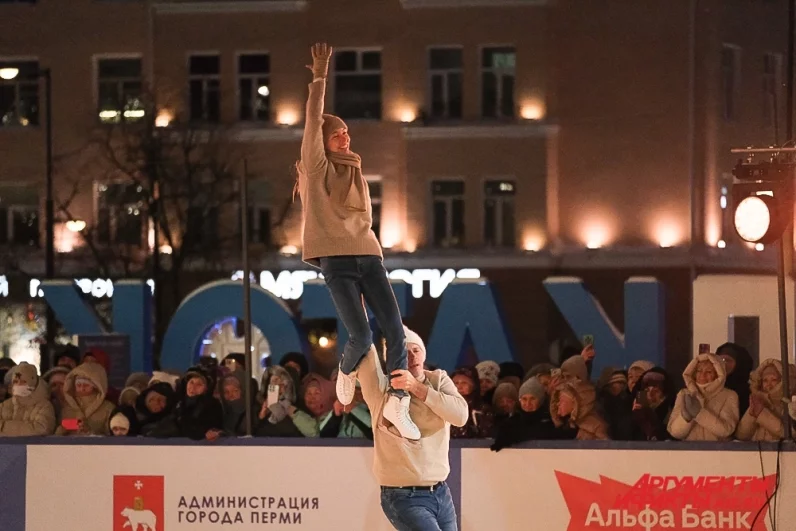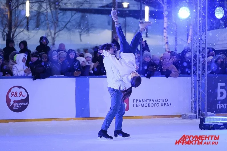 Олимпийские чемпионы по фигурному катанию приняли участие в шоу Ильи Авербуха на эспланаде в Перми.