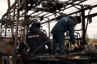 Опубликованы фото автобуса, дотла сгоревшего возле школы под Пермью