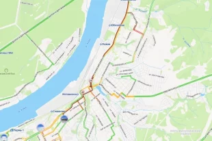 Пробка на Соликамской в сторону центра начинается уже на Вышке II.
