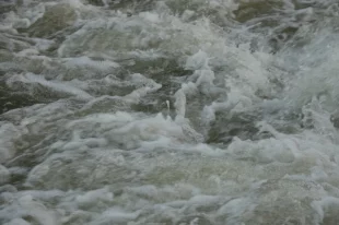 Из-за мокрого снега и дождя в реки поступило много воды.